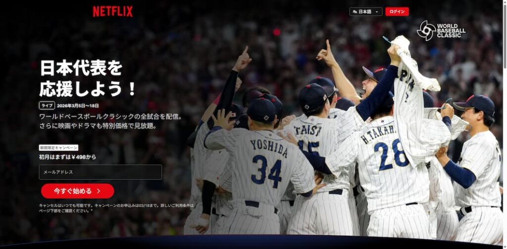 WBC 2026はNetflixが全試合を独占生配信しています。(見逃し配信にも対応)